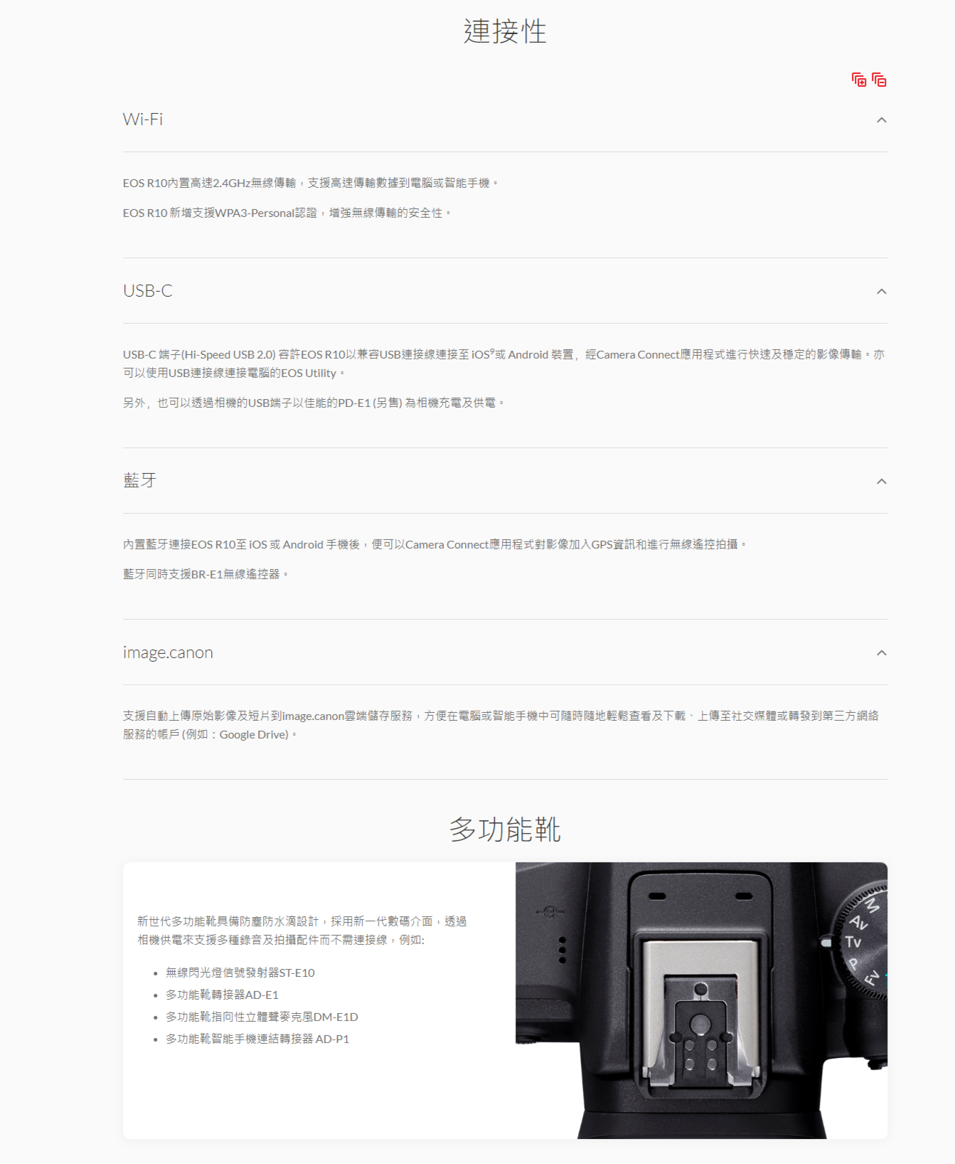 | 周邊連接 | USB Type-C (Hi-Speed USB 2.0) 數碼端子、3.5mm直徑外接麥克風輸入端子、 HDMI micro (Type D)輸出端子及E3型端子 |