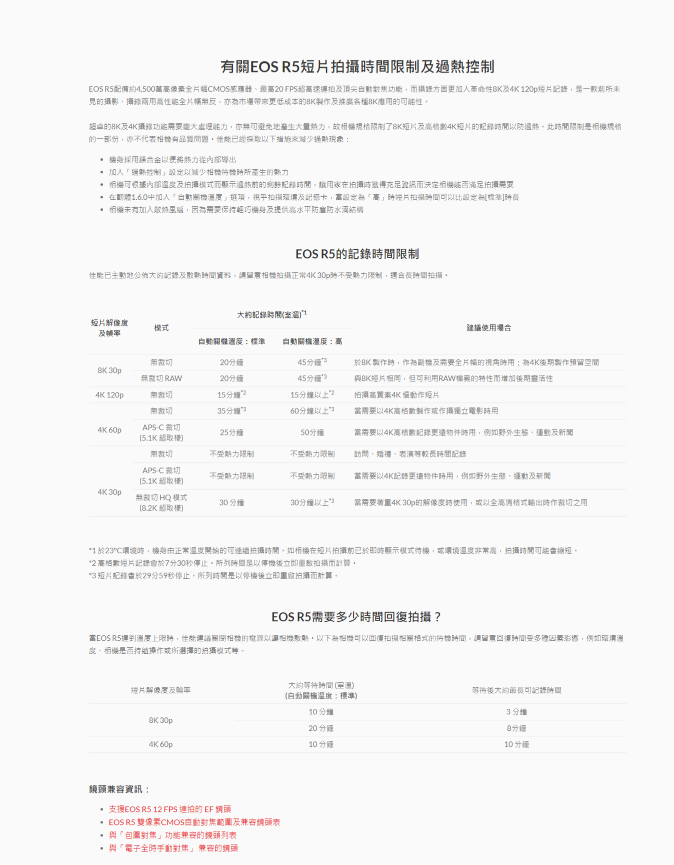 | 另選電源 | 支援以USB電源轉接器PD-E1(另購)經USB Type-C端子以交流電充電。另支援交流電可經由交流電轉接器AC-E6N(另購)及直流電連接器DR-E6(另購)提供 |