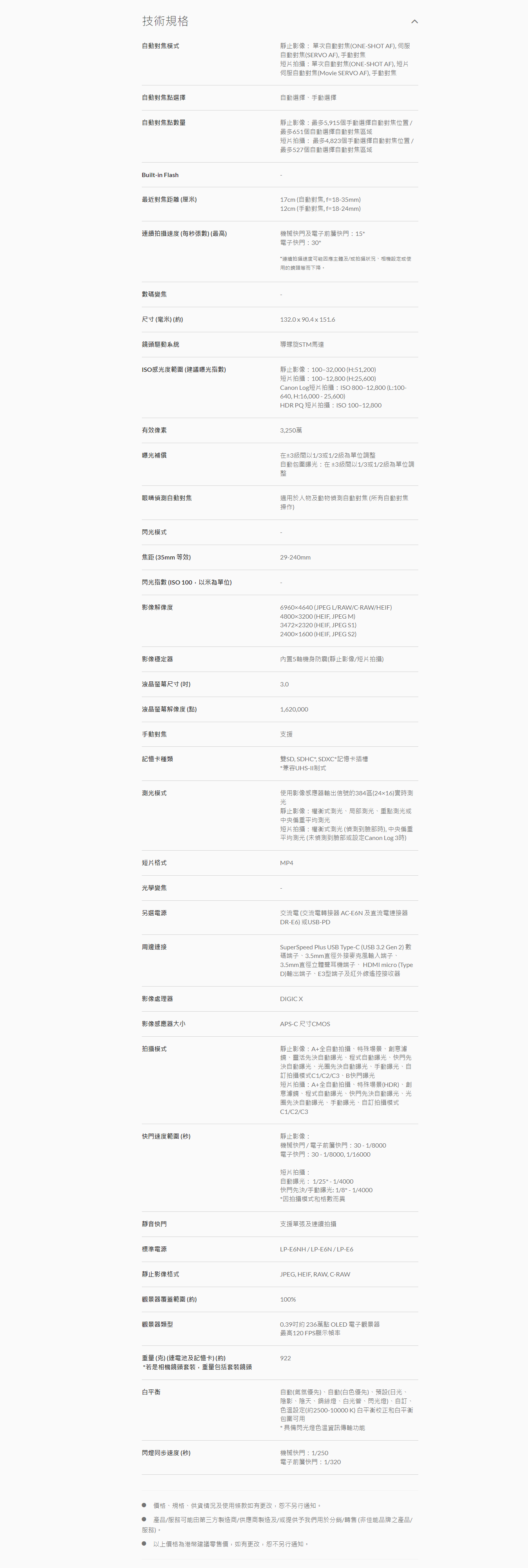 .無裁切 4K UHD 30P短片(7K超取樣), 4K UHD 60P 短片及支援Canon Log 3