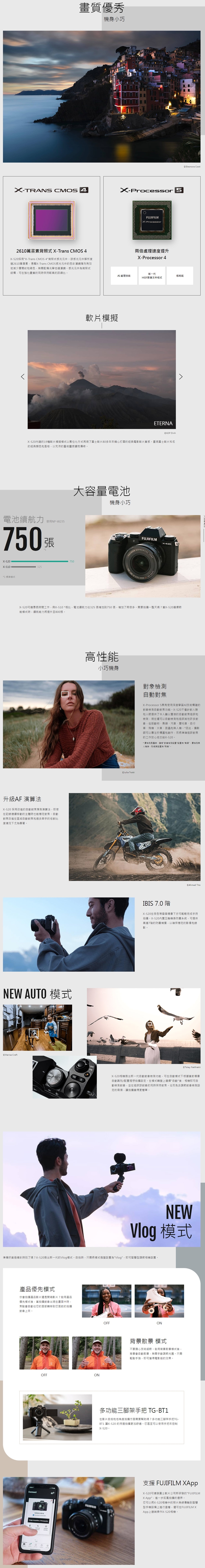 | 感光元件 | 23.5mm x 15.6mm (APS-C) X-Trans CMOS 4 連原始色彩濾鏡 |