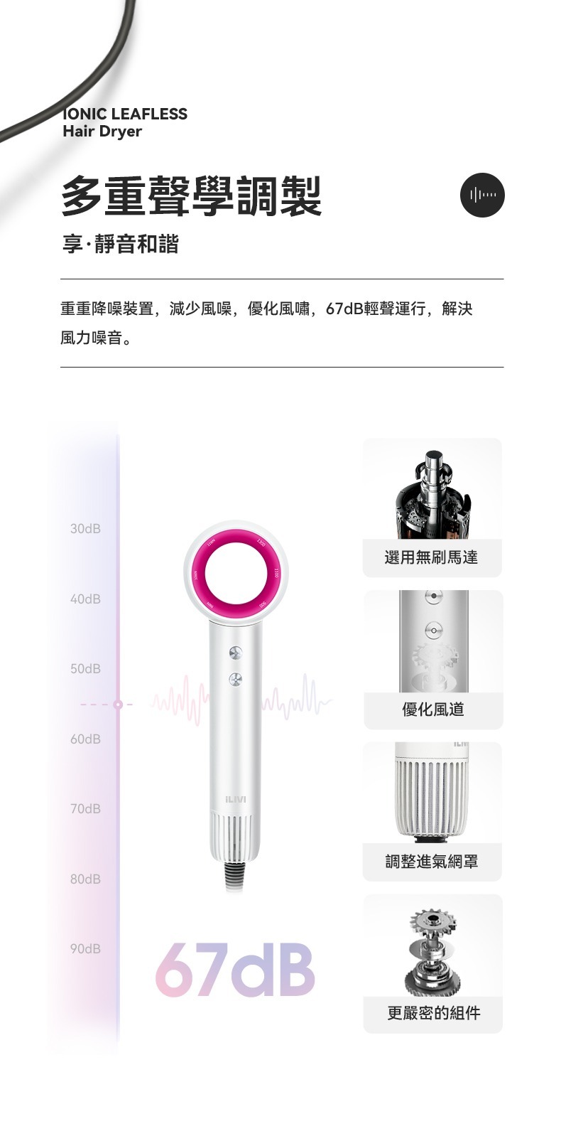 -超強降噪處理67db低噪音,邊吹頭邊對話都冇問題