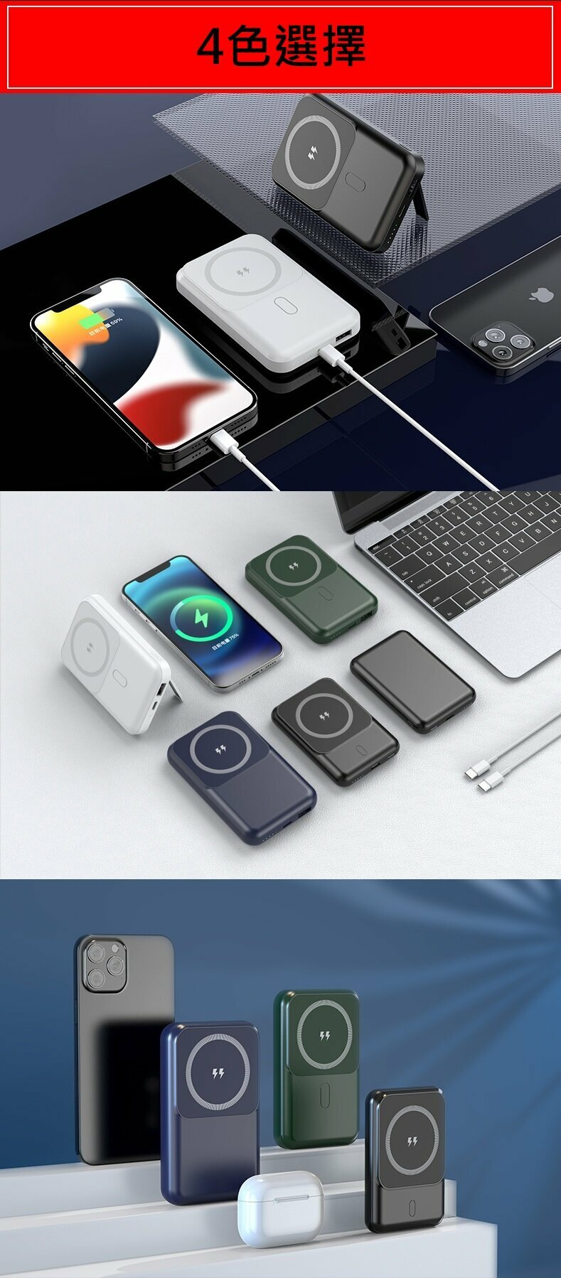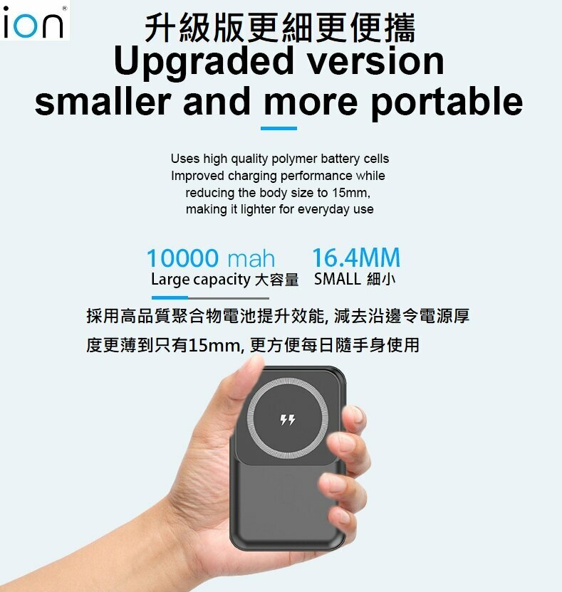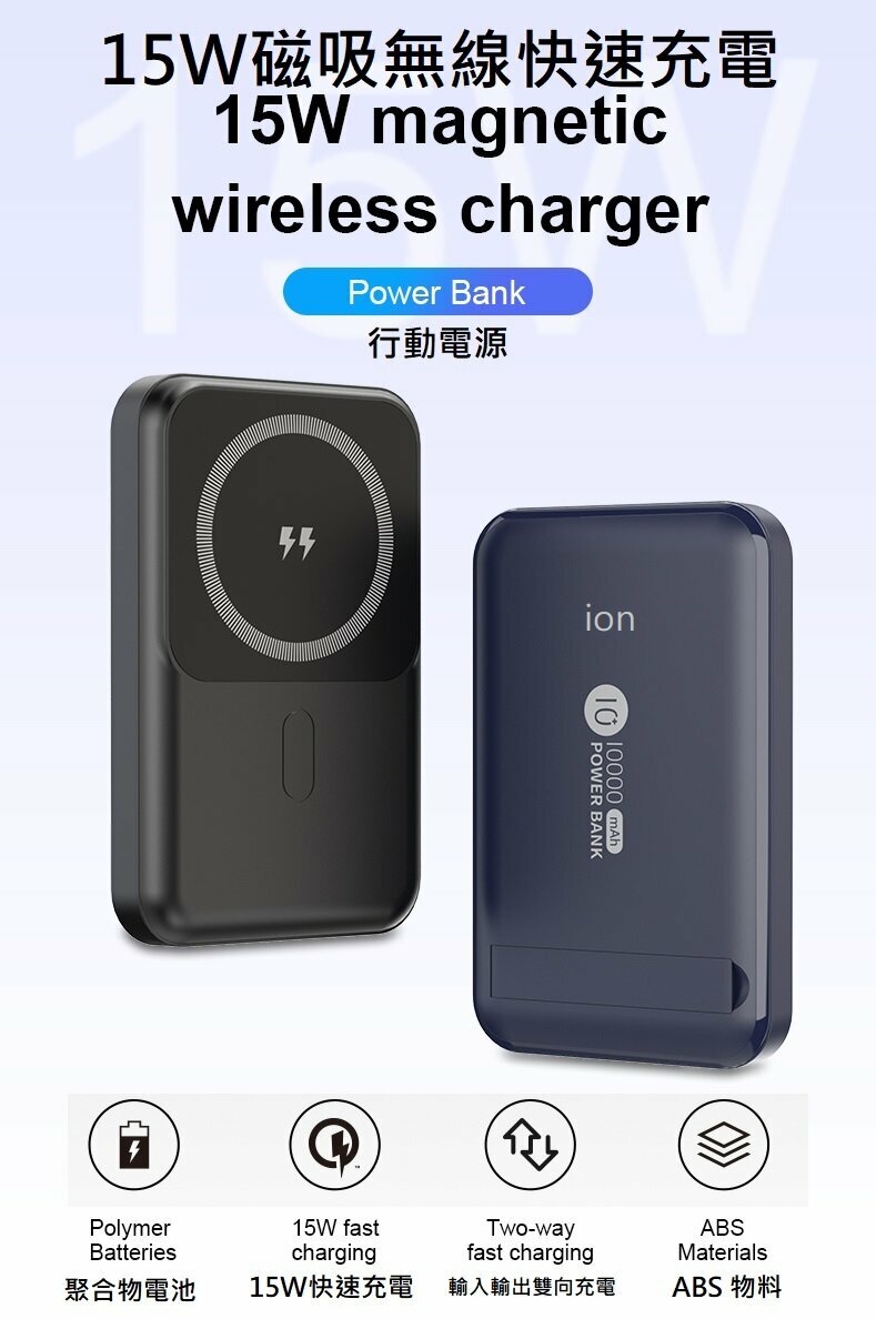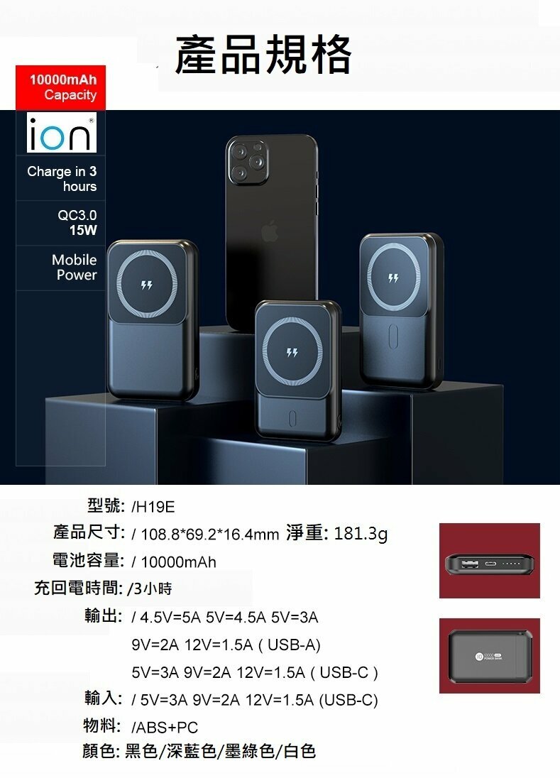 -10000mAh適用於iPhone 14/13/12系列, 兼容APPLE MagSafe 磁石功能
