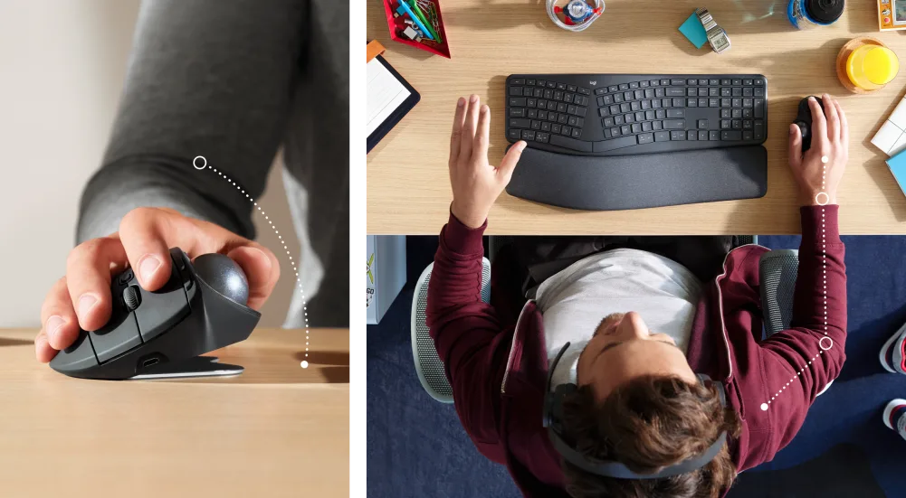 因為不必四處移動手部,MX ERGO 非常適合狹窄的工作空間和擁擠的辦公桌。此外,您可以在任何表面上順暢追蹤。無論在哪裡工作,軌跡球都能發揮最大作用。