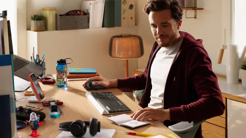 舒適地進行工作,即使是在家中有限的空間裡。 手工打造的 MX ERGO 外型可確保完全支撐手掌,而柔軟的橡膠則能提供舒適的抓握力。