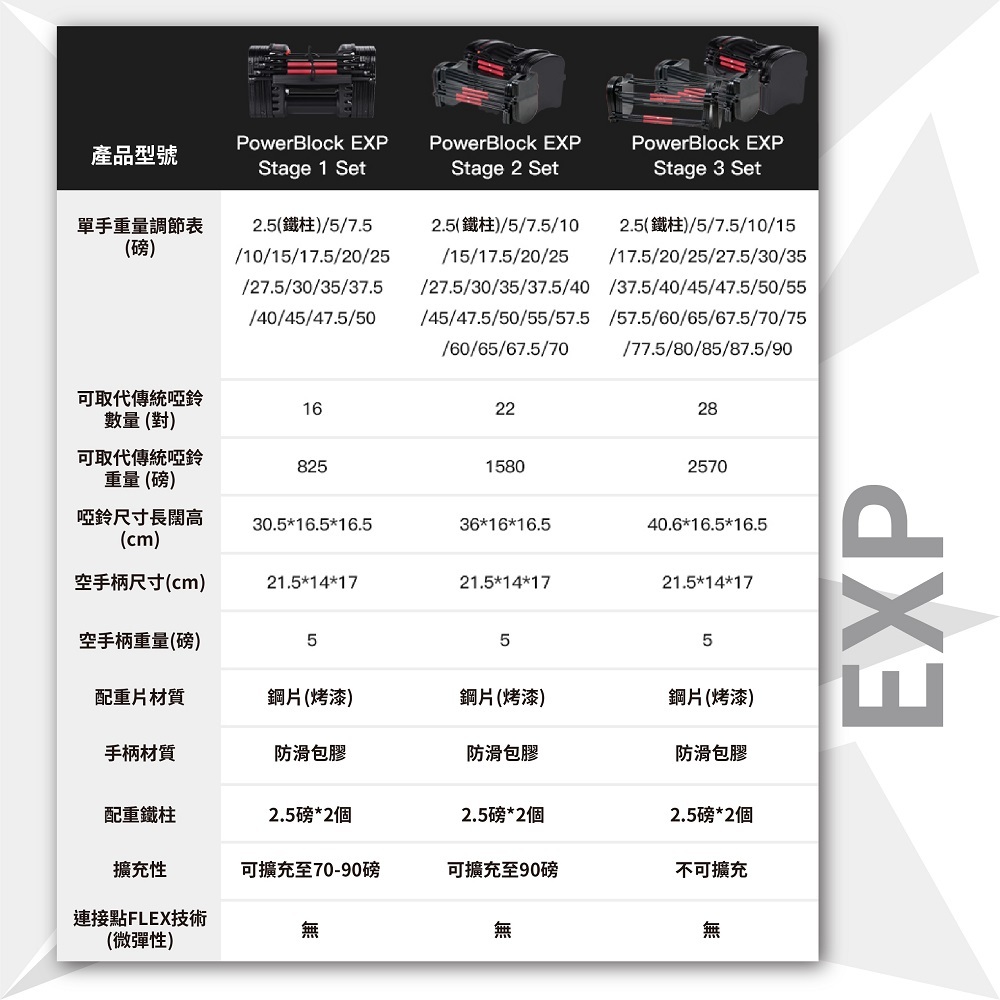 PowerBlock Sport EXP 的重量調節間隔 (磅/lbs):