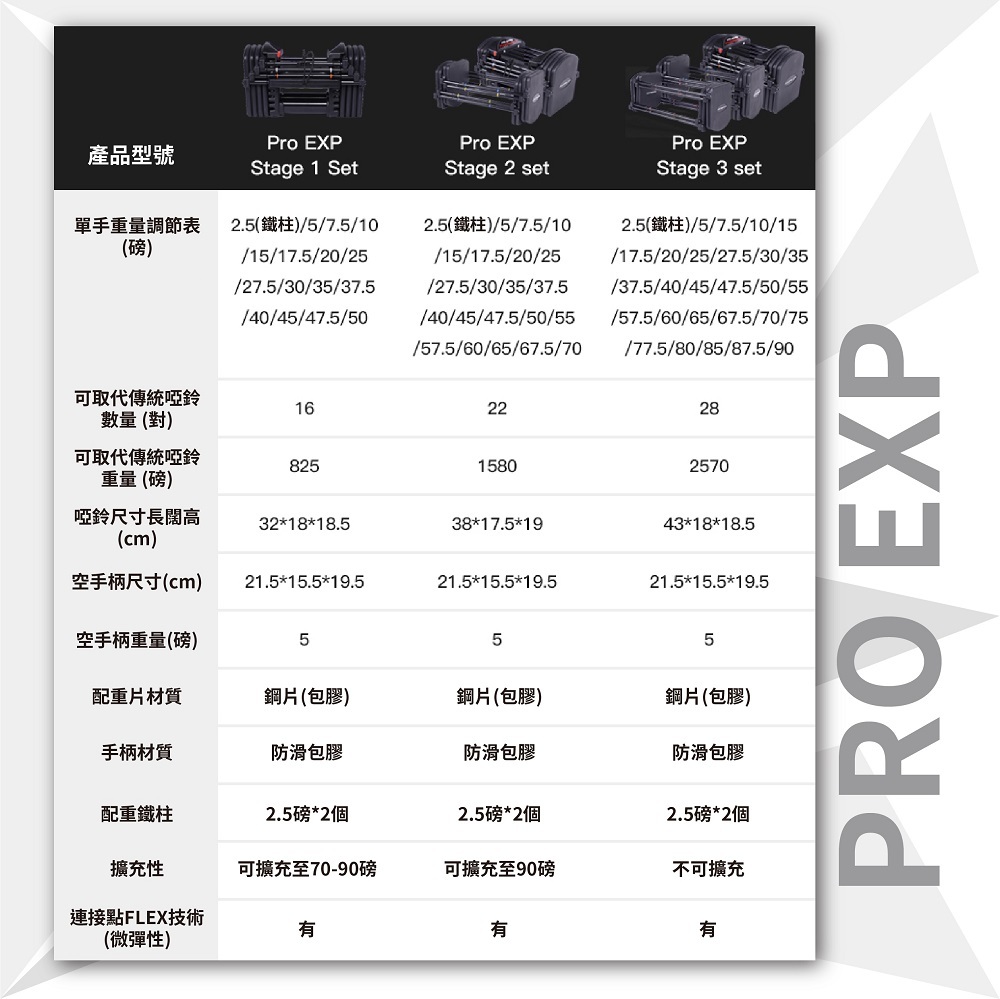 美國著名啞鈴品牌,擁有27年啞鈴設計及研發經驗,獲眾多NBA頂尖藍球隊選用。PowerBlock PRO EXP系列重量可由5磅調至50磅,以調重插杆快速調節重量,無需更換啞鈴片,方便慳位,可加購升級配件將重量擴充至70或90磅,另有專屬壺鈴配件及推桿可供選配。