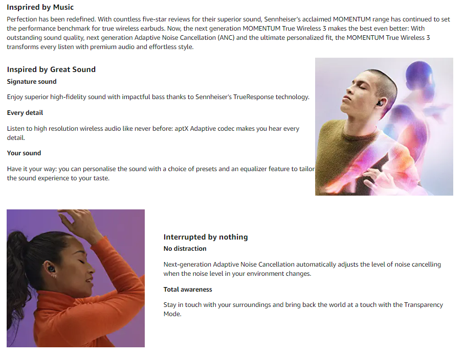 得益於SennheiserTrueResponse技術,享受卓越的高保真聲音和富有衝擊力的低音。