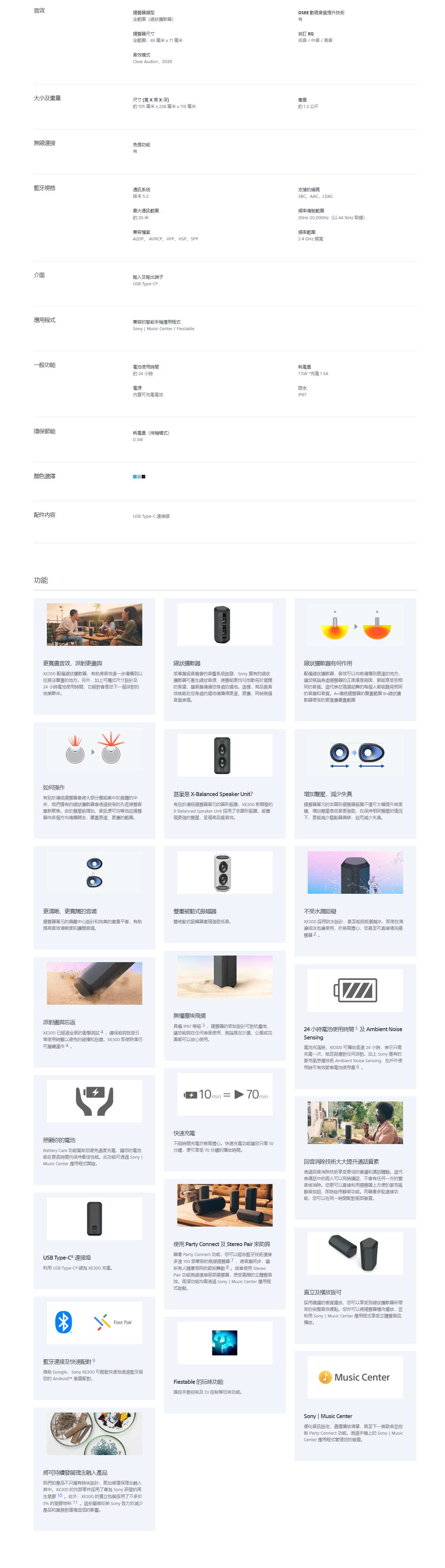 XE300 揚聲器是一款耐用、提供驚人電池使用時間的可攜式揚聲器,讓您與派對現場的每一位分享相同的音效體驗。