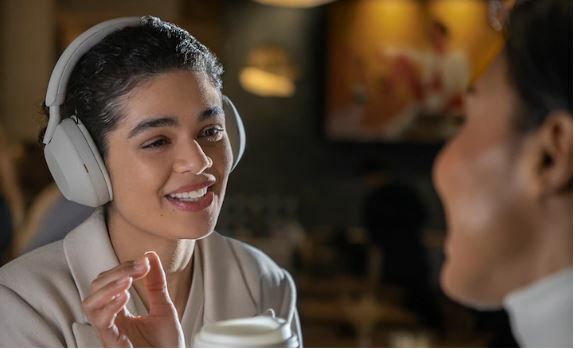 只要您開始說話,Speak-to-Chat 就會自動停止音樂並引入環境聲音。如果您不想除下耳機,或想要免提通話,此功能可謂相當方便。此項智能功能採用耳機內置麥克風和先進的音頻訊號處理技術,以識別您的聲音並作出反應。對話結束後,音樂會自動恢復播放。