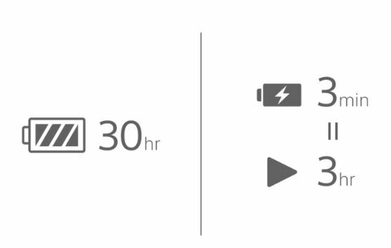電池使用時間長達 30 小時,即使是出門遠行亦足以應付。如需迅速充電,只需使用選購的兼容 USB-PD 的 AC 適配器充電 3 分鐘,即可使用 3 小時。
