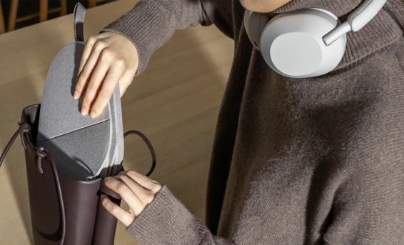 將耳機放在柔軟的同色系便攜盒中,以輕鬆攜帶。取出耳機並摺疊便攜盒,方便放於袋中。